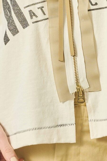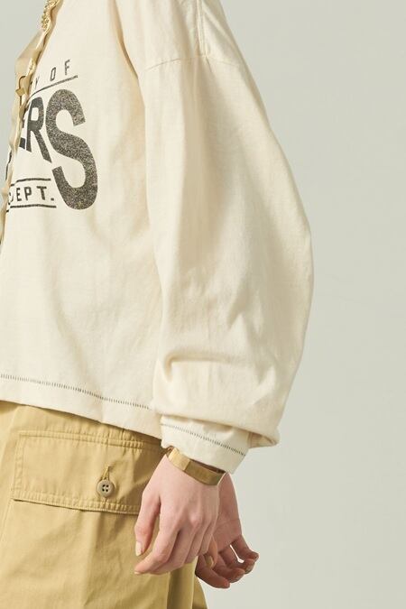 オーバーサイズのプリントTをベースにリメイクを施しました。