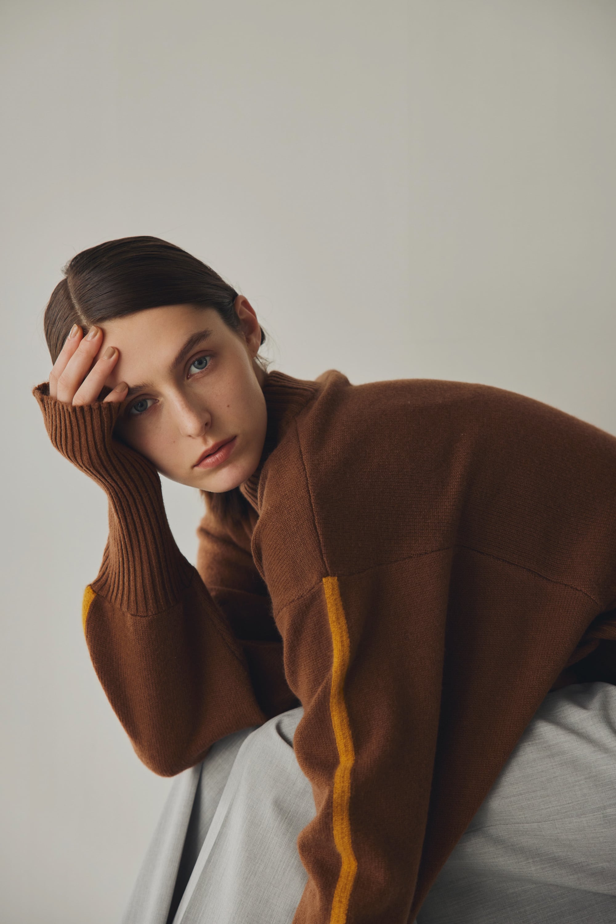 ・また、ウールのしっかりとした風合いにカシミヤを入れる事でふんわりとした柔らかい質感を実現しました。