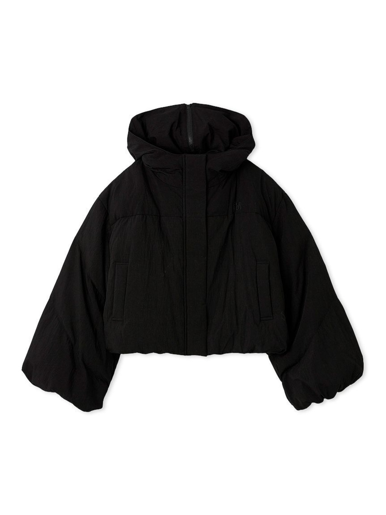 FURFURらしい愛らしい柄使いが目を引くパディングジャケット。ふんわりとしたボリュームシルエットのお袖がデザインのポイントです。フード部分のフロントファスナーを開くと大きな衿に変形する2WAY仕様で、カジュアルにもレディな着こなしにも相性◎。防寒性だけではなく着回し力も抜群です。胸元にはアクセントで微配色のロゴ刺繍を刺しました。