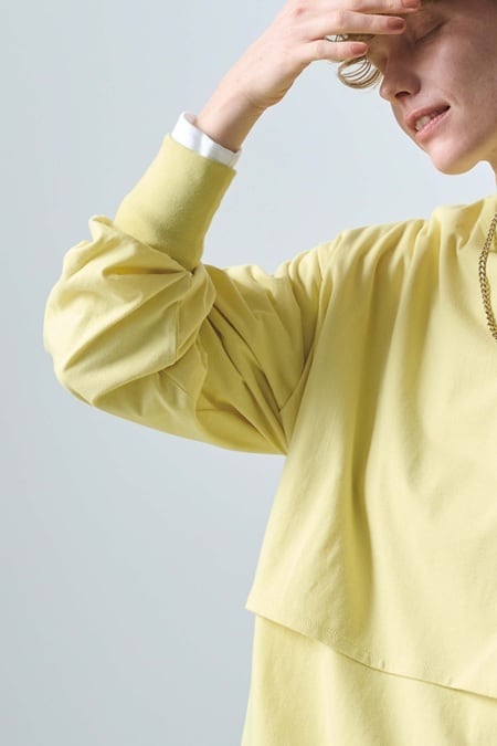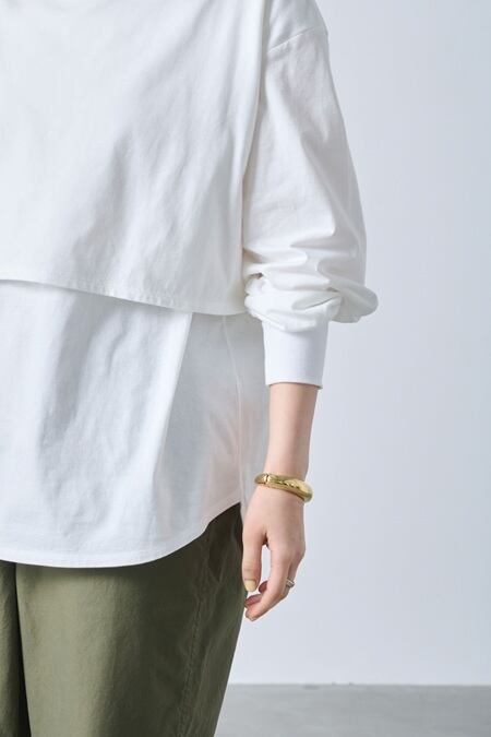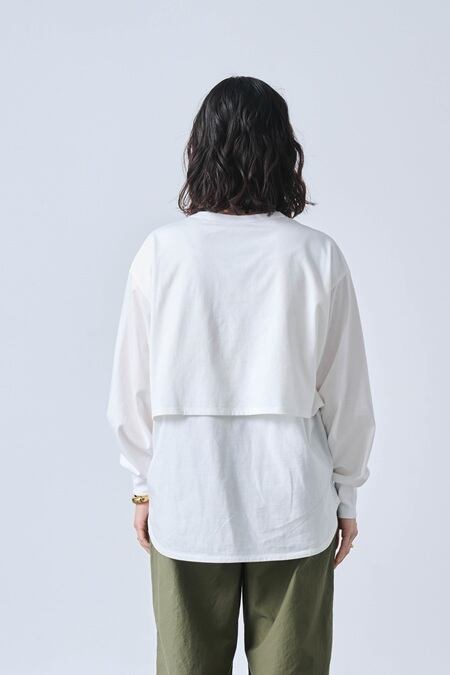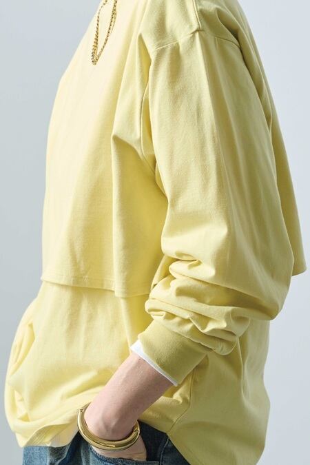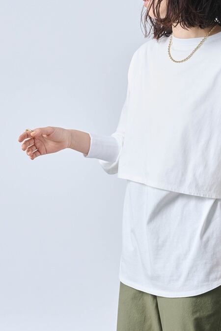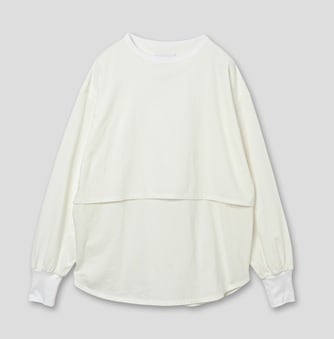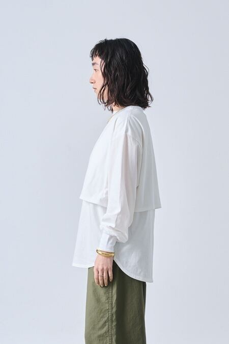 レイヤードデザインが特徴的なロングスリーブカットソーです。