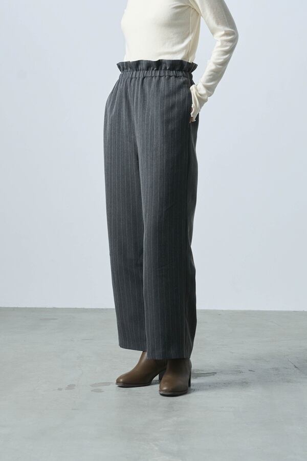 ウエストのシャーリングデザインがタックインした際にも様になるワイドイージーパンツです。