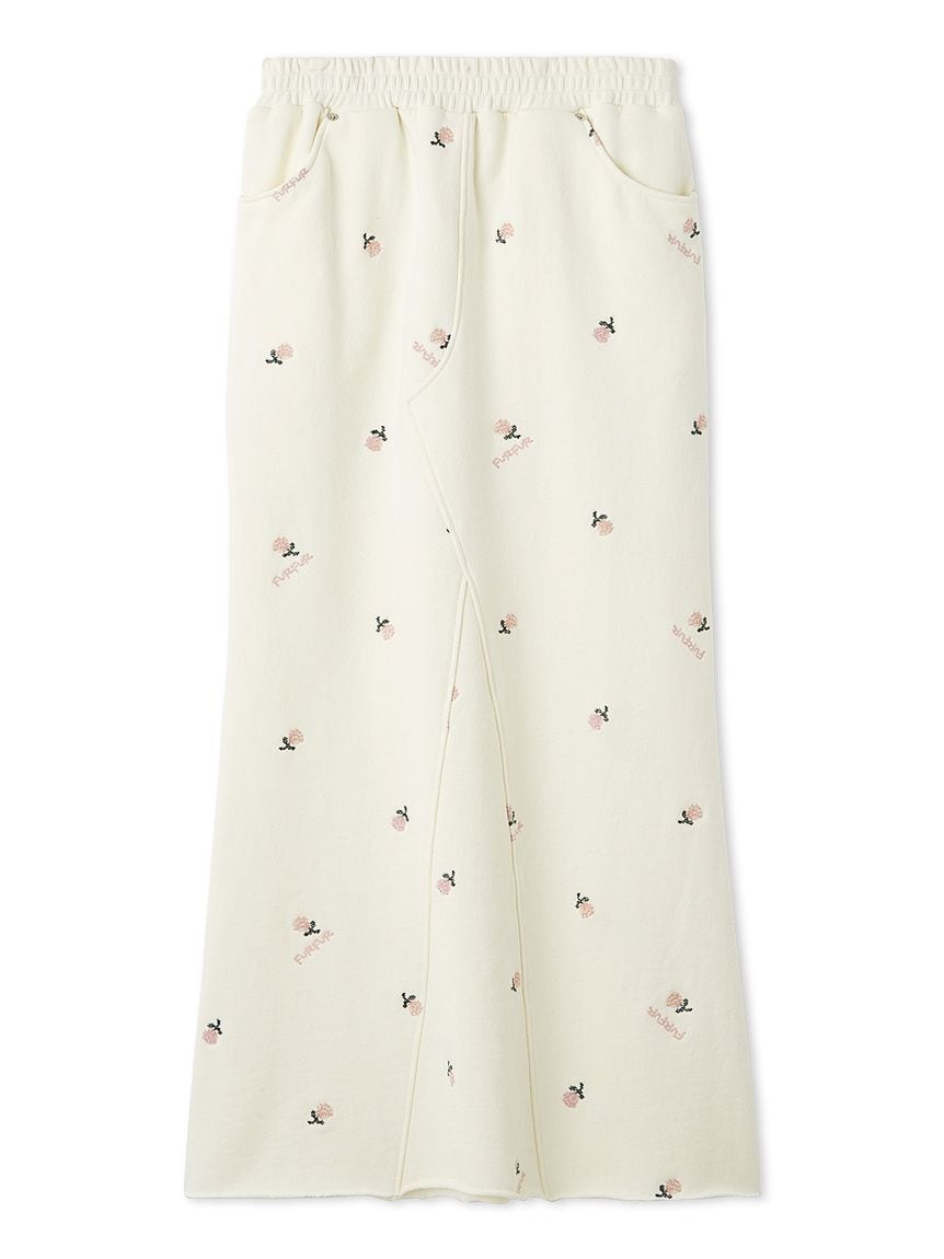 フラワー刺繍スウェットスカート